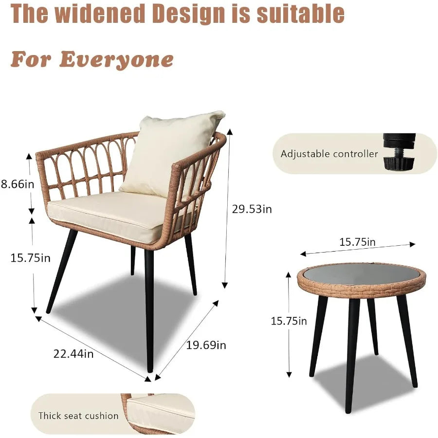 3 Piece Patio Bistro Set from Hign-concerned brings a warm, inviting touch to your outdoor spaces, blending weather-resistant rattan with a sleek glass tabletop for a garden-ready, home-friendly look.