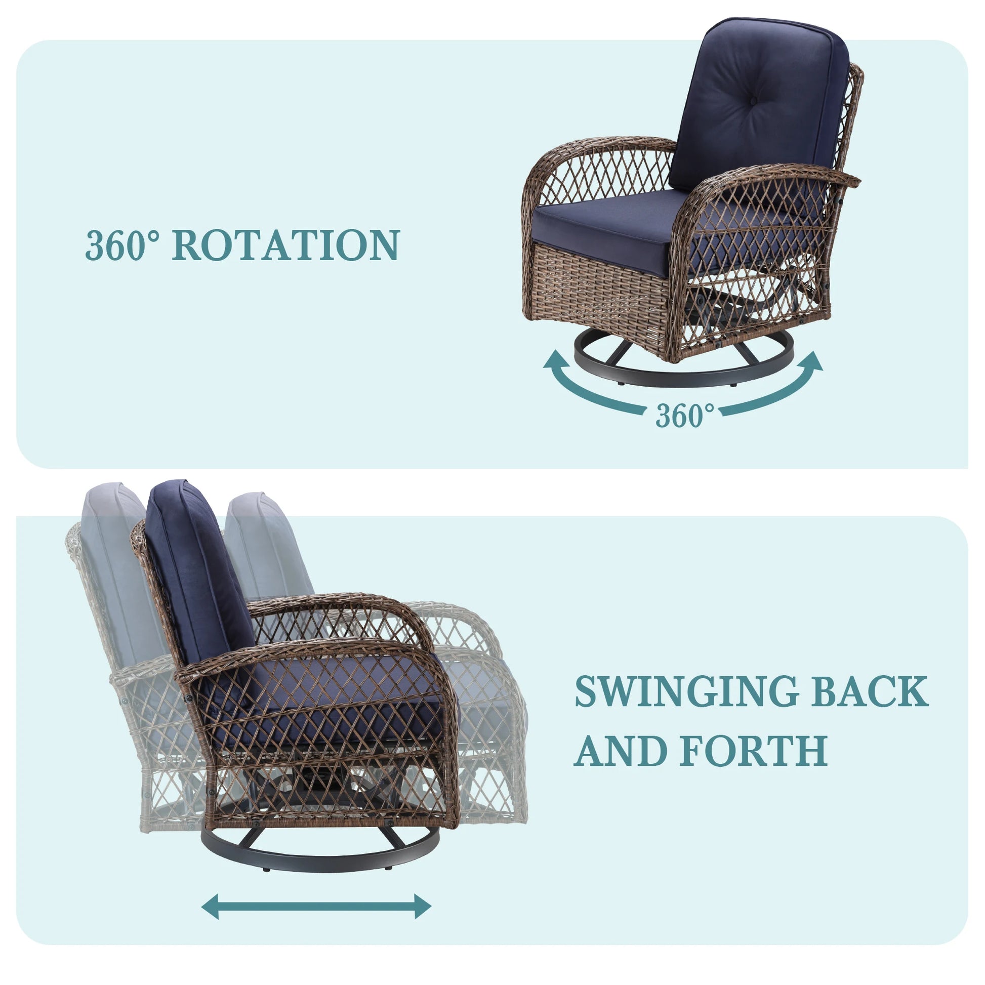 Ideal for Outdoor Leisure: Designed specifically for outdoor living, this rotating rocking chair combines stylish appearance with functionality. Whether on the patio, courtyard, or balcony, it can become a beautiful highlight in your outdoor space