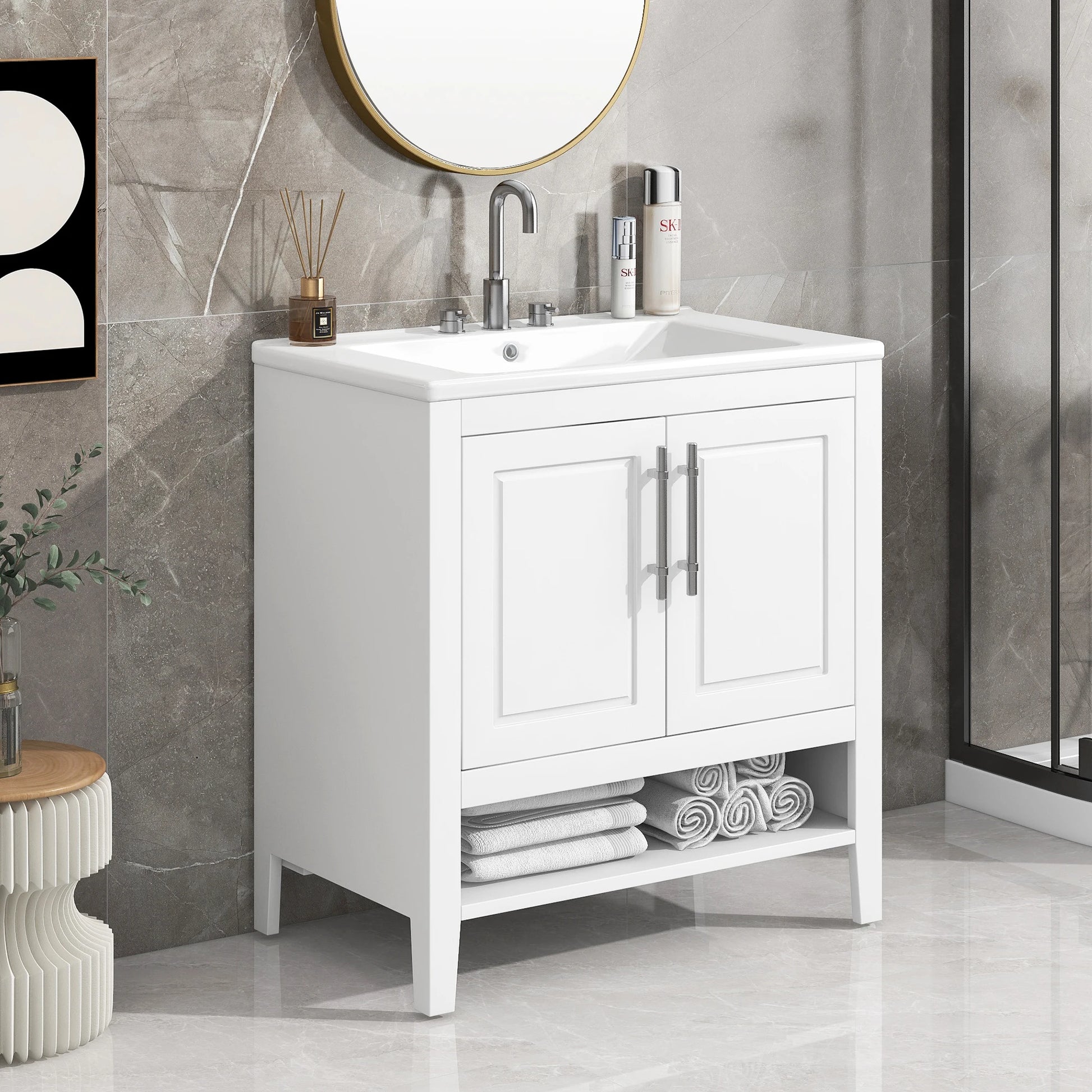 30" Bathroom Vanity Sink, White, MDF Cabinet With Doors