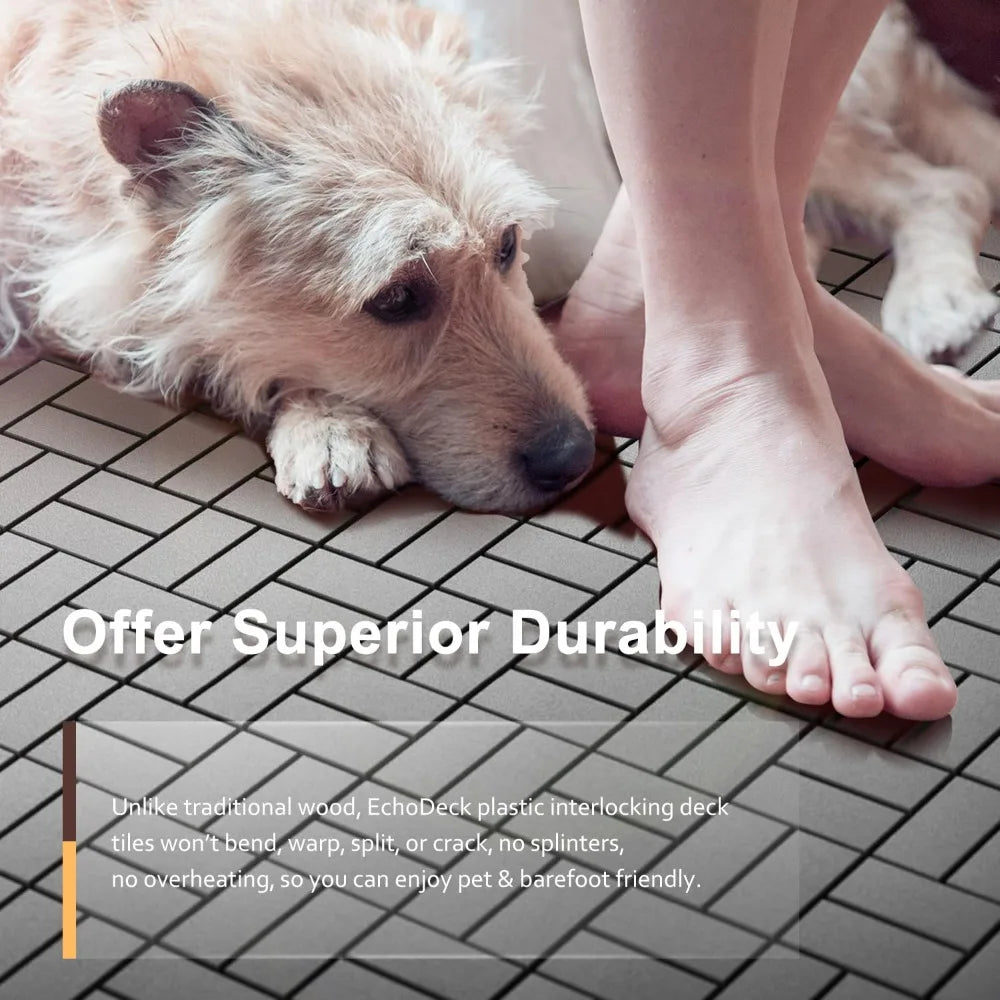 Transform your outdoor spaces with Interlocking Patio Deck Tiles—the quick, tool-free way to create a warm, inviting deck in your garden, on a terrace, or beside the pool.