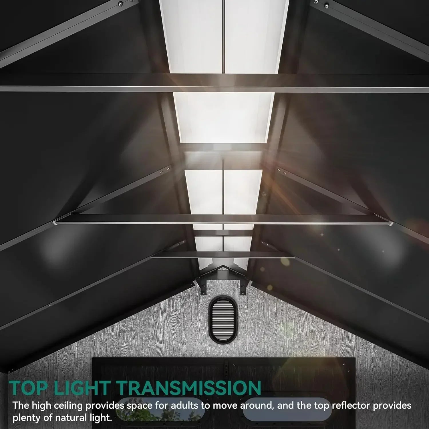 Keep your outdoor space organized and clutter-free with the 8 x 8 Ft Outdoor Resin Storage Shed With Floor and Lockable Door. This durable, weatherproof garden shed is crafted from high-quality thermoplastic resin, delivering a sturdy, UV-resistant solution that protects your tools, equipment, and belongings year after year. Its thoughtful design provides secure storage without sacrificing light or airflow.