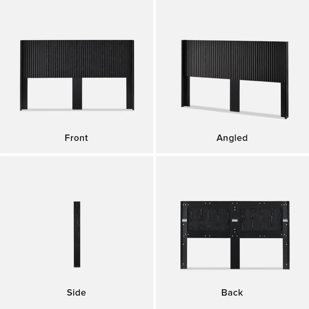 Brooklyn 80.8" Headboard Only, Wood Headboard, Modern Farmhouse, Boho, Wall Mount, Fluted Panel, Wingback Design, Black Oak