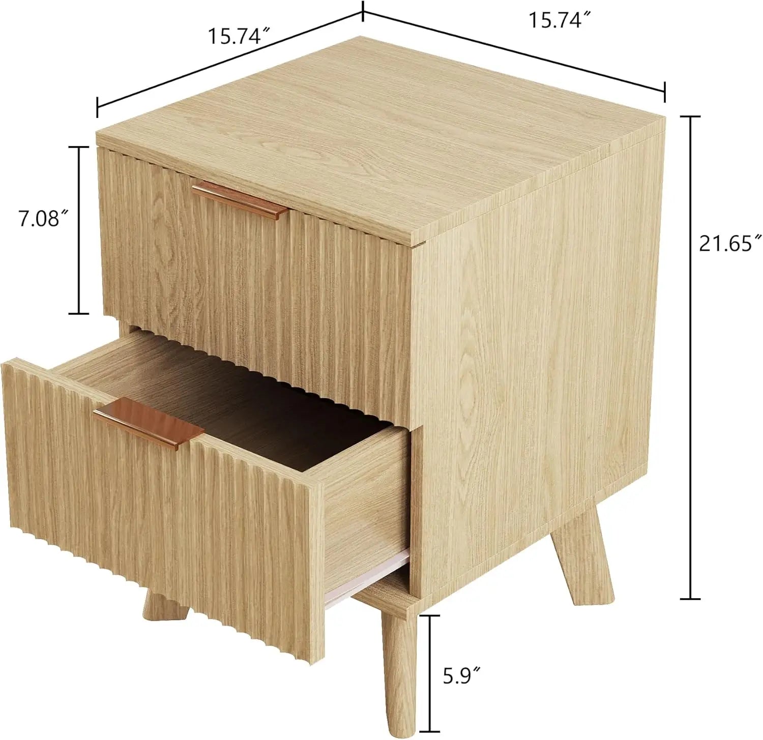 - Front view highlighting the fluted drawer front