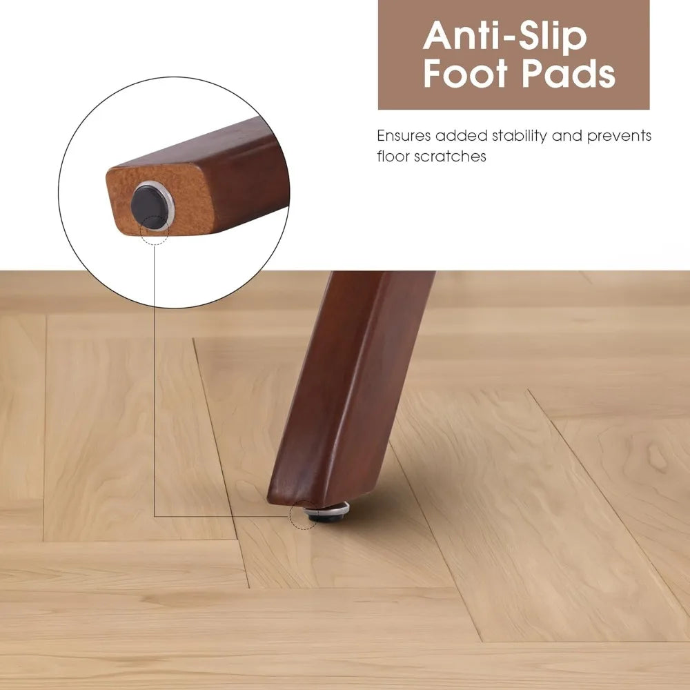 The combination of a tempered glass surface and solid wood legs delivers a durable, easy-to-clean dining solution that stands up to everyday use. Anti-slip pads keep floors safe from scratches, and the smooth edges of the glass add a sleek, sophisticated touch to any dining corner.