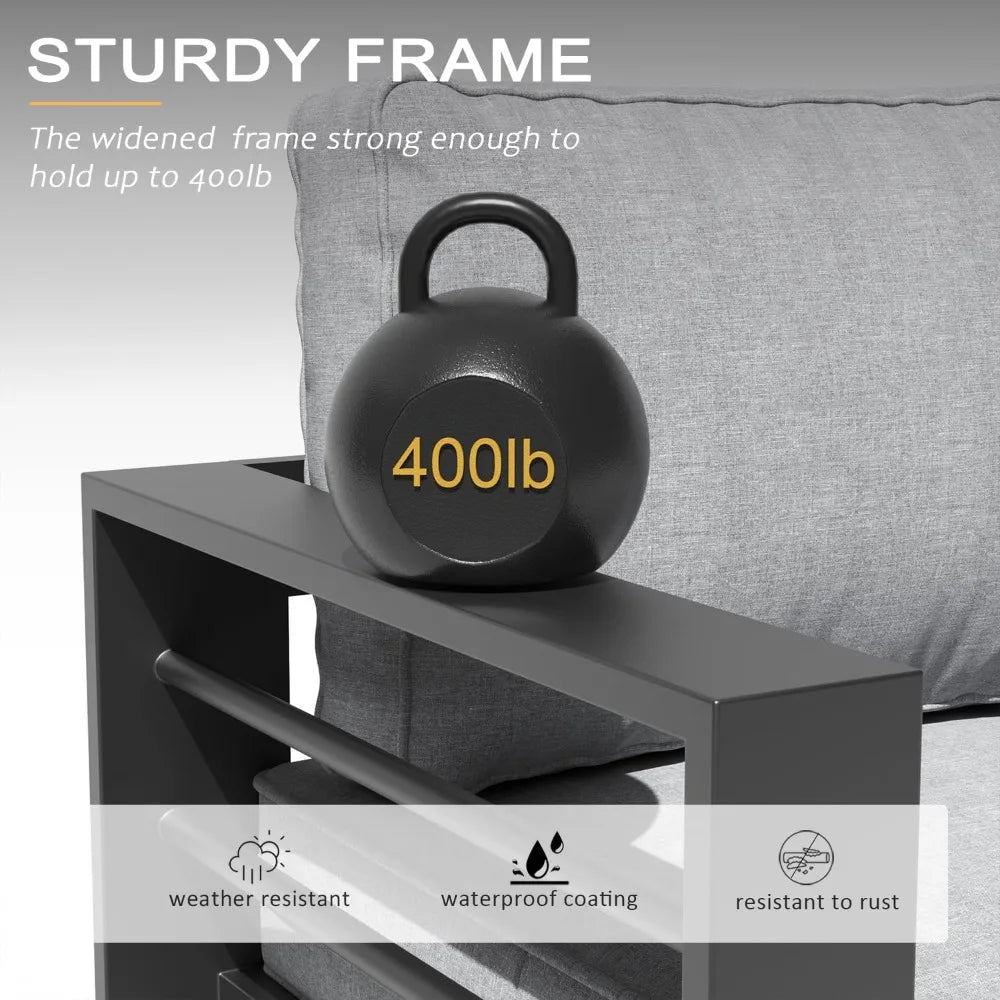 High-Quality Outdoor Aluminum Furniture Set, 5 Piece, Patio Sectional Conversation Chat Sofa Modern Seating Set