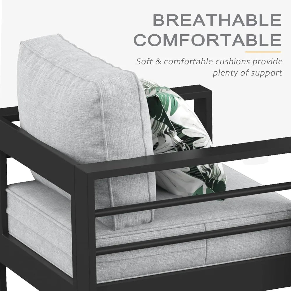Outdoor Aluminum Furniture Set, 5 Pieces Patio Sectional Conversation Chat Sofa Modern Seating Set with Coffee Table