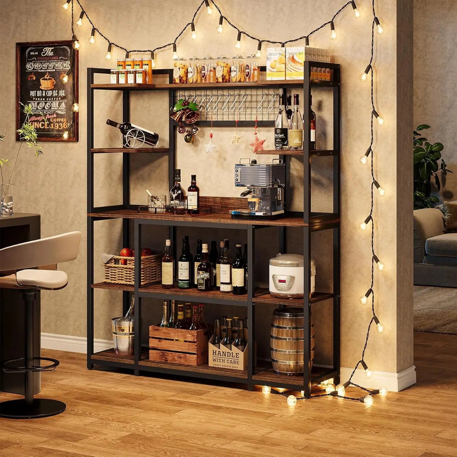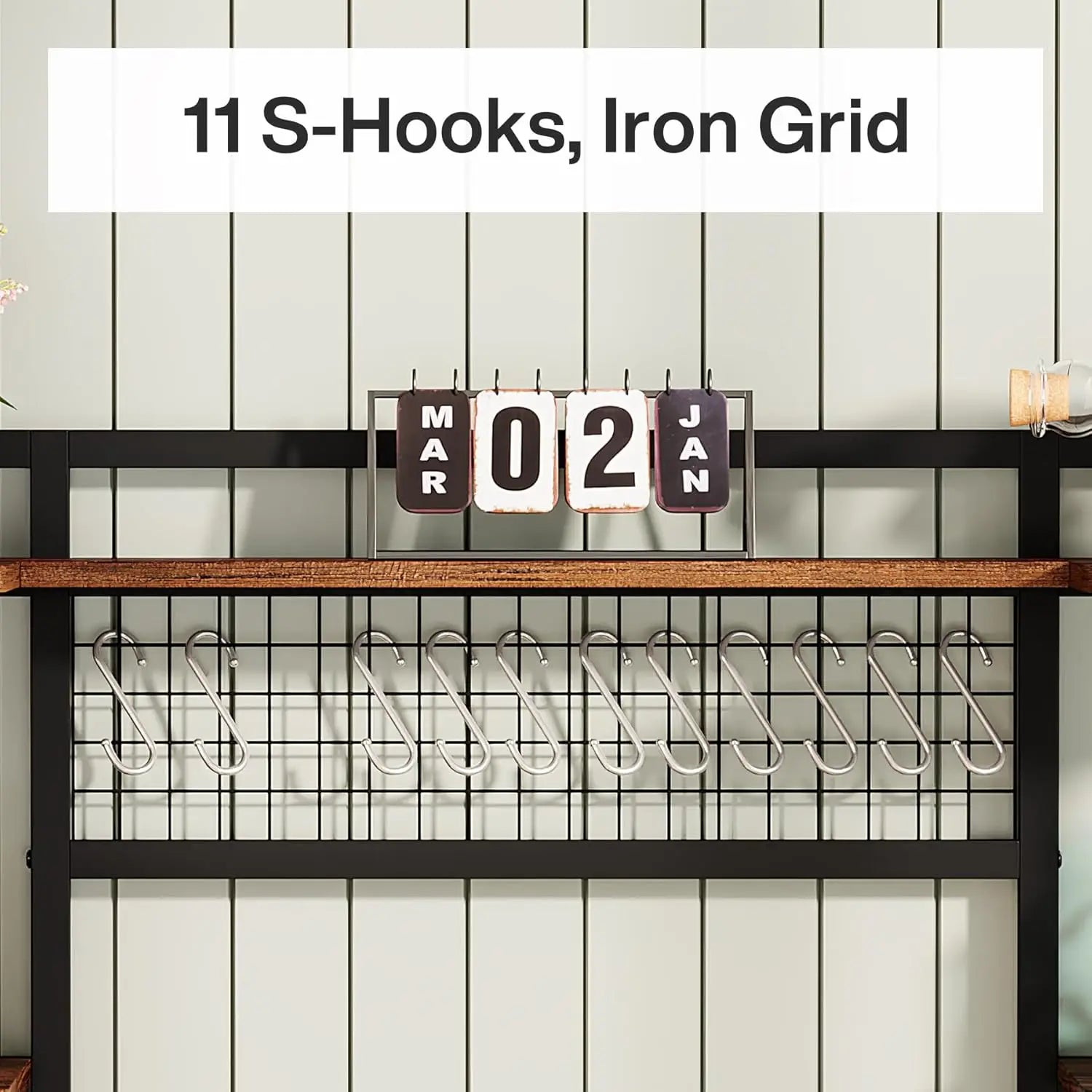Kitchen Bakers Rack, Microwave Stand, 55" Wide Kitchen Storage Shelf, Large Coffee Bar Station Baker's Rack with 11 Hooks