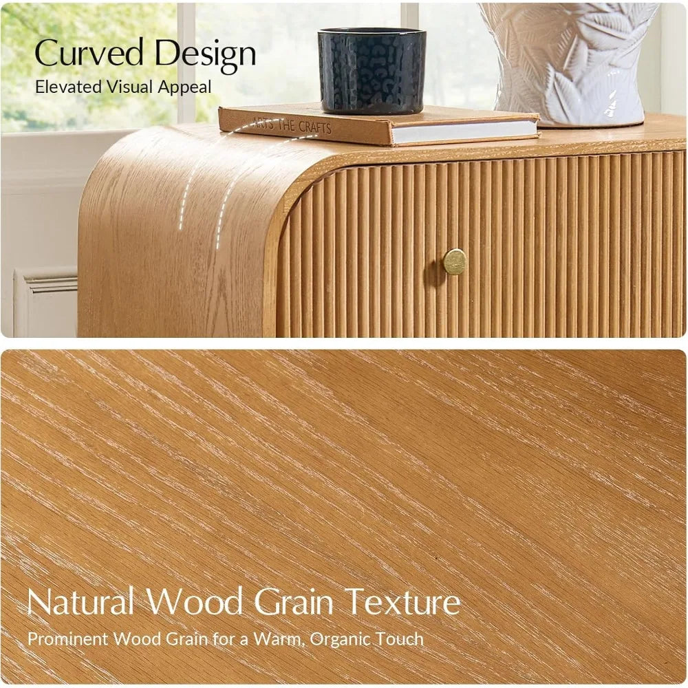- Modern Aesthetic Design: Curved corners, fluted drawer front, vertical reeding, and rich wood grain create a stylish focal point that complements any decor.