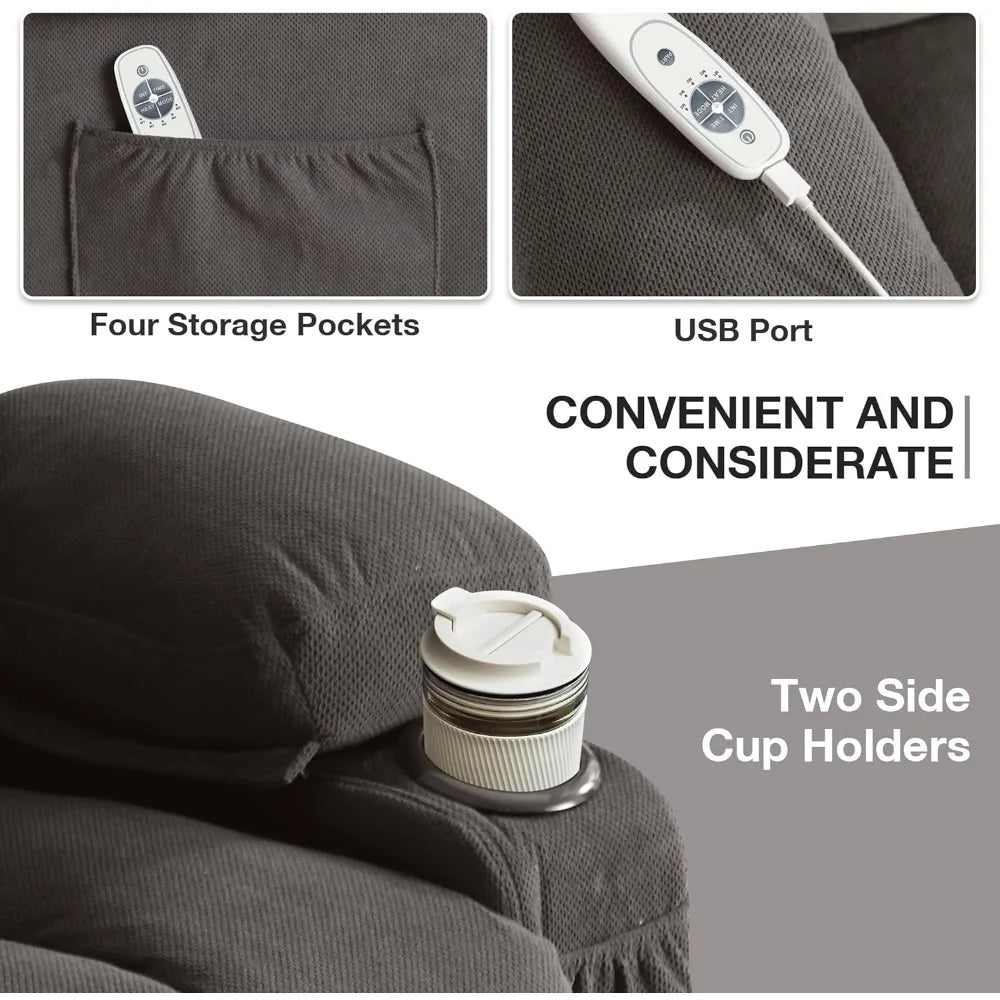 Power Lift Recliner Chair with Heat and Massage, Electric, Fabric Recliner Chair for Elderly with Side Pocket, USB Charge Port