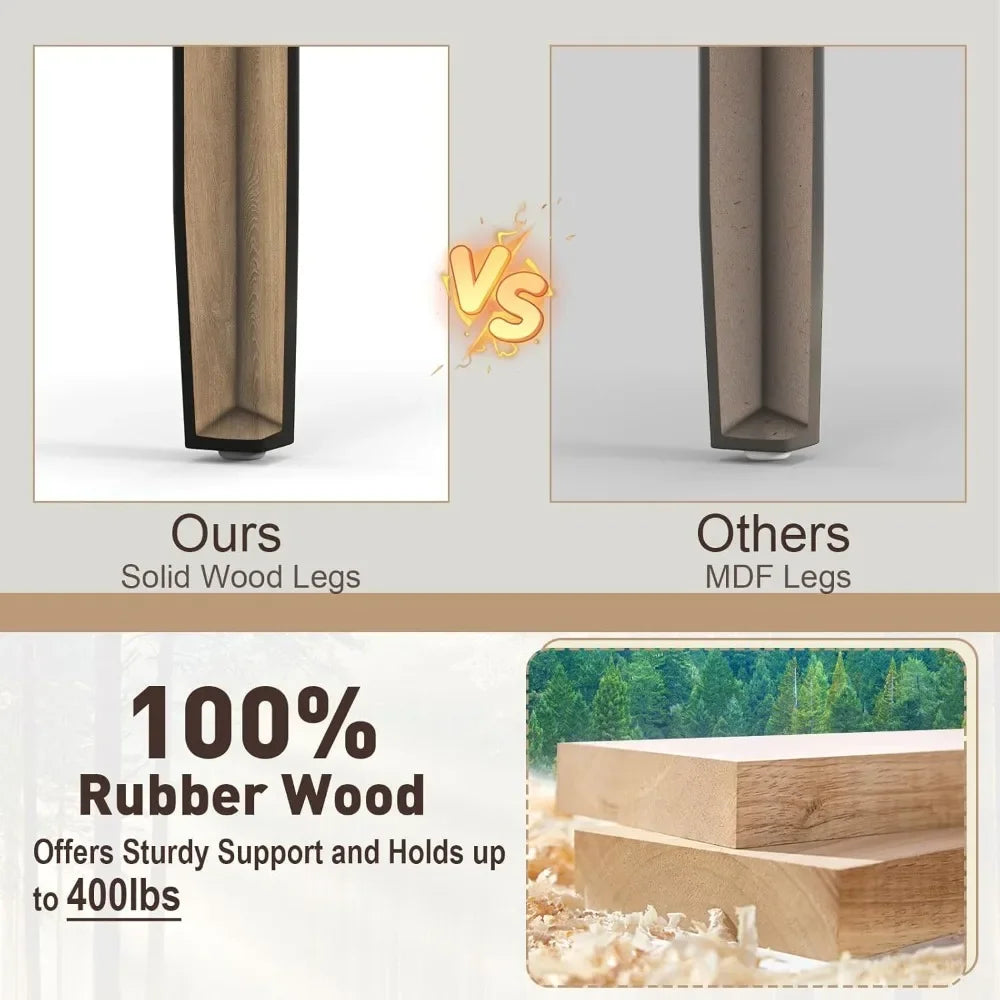 - Solid Rubber Wood construction: All legs are made from high-quality rubber wood, natural and sturdy, supporting up to 400 lbs, with a smooth, burr-free surface for comfortable seating.